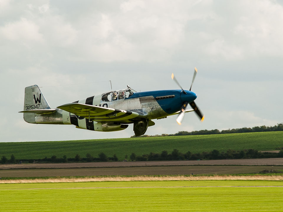P-51C Mustang 'Princess Elizabeth' taking off at Duxford Aerodrome, Cambridgeshire, England