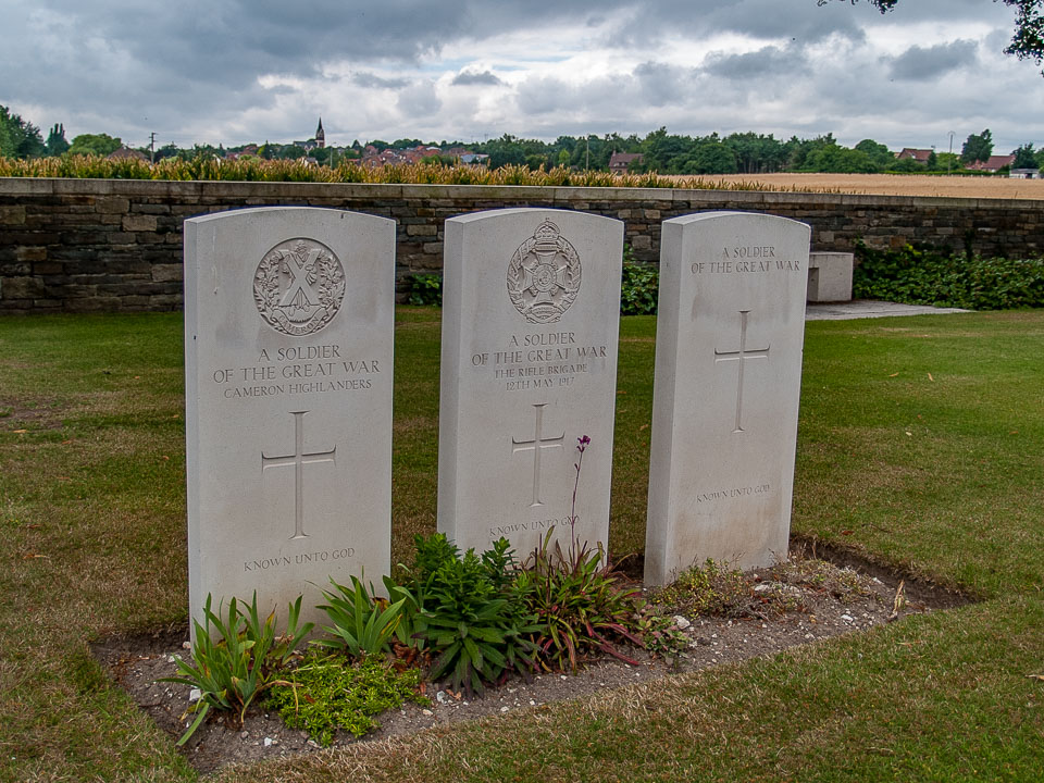 Brown's Copse Cemetery, Fampoux: Three levels of Unknown.