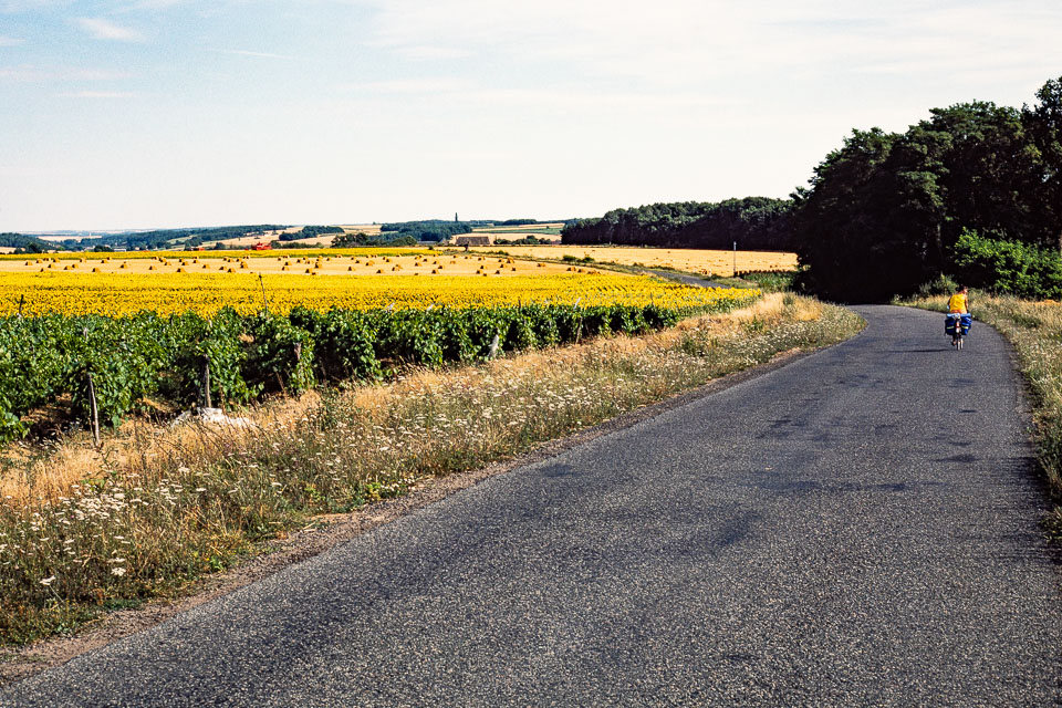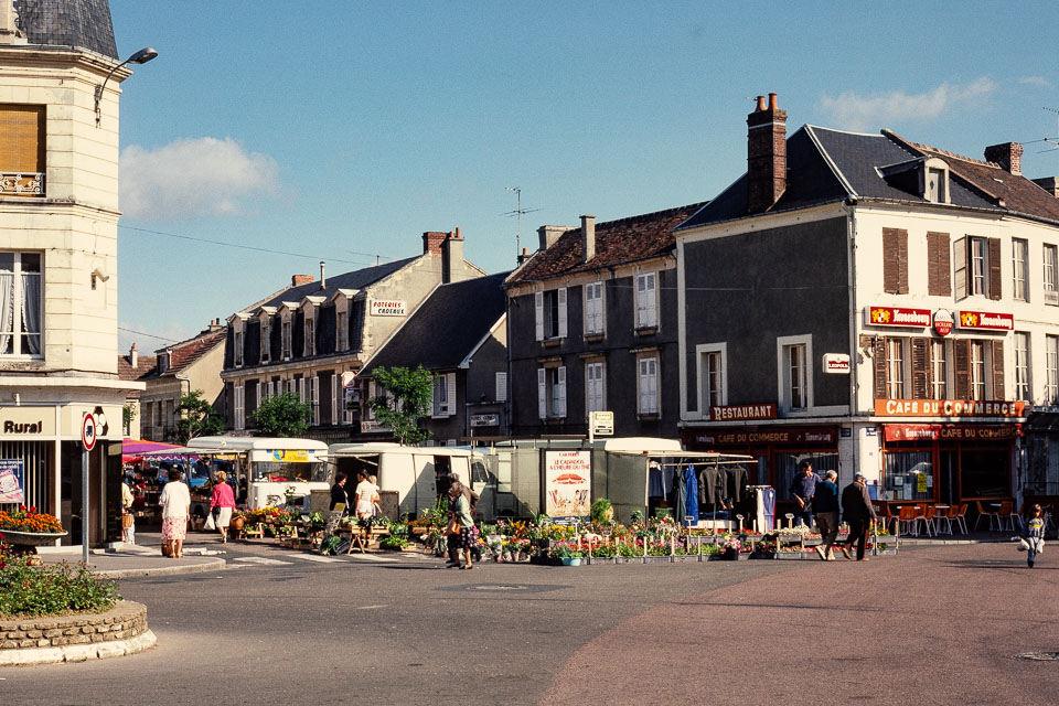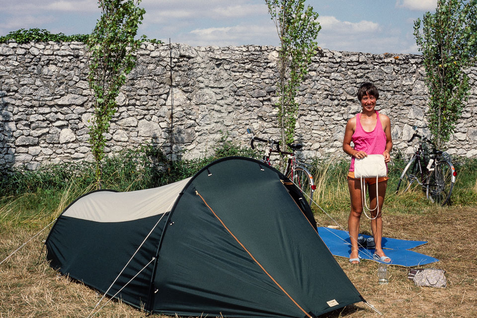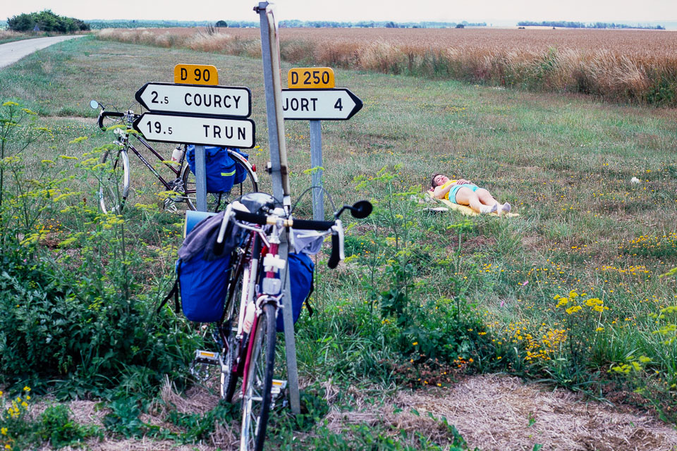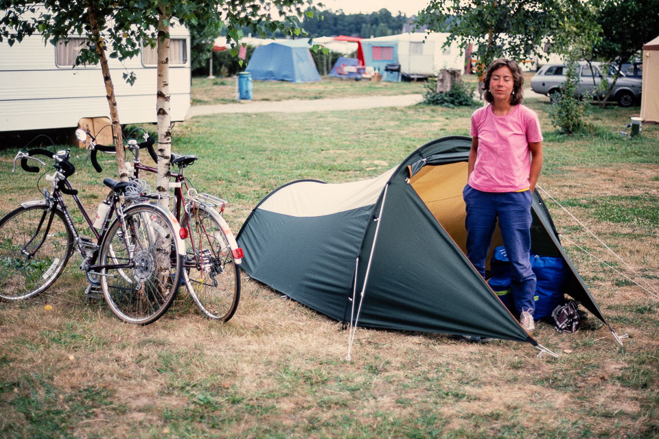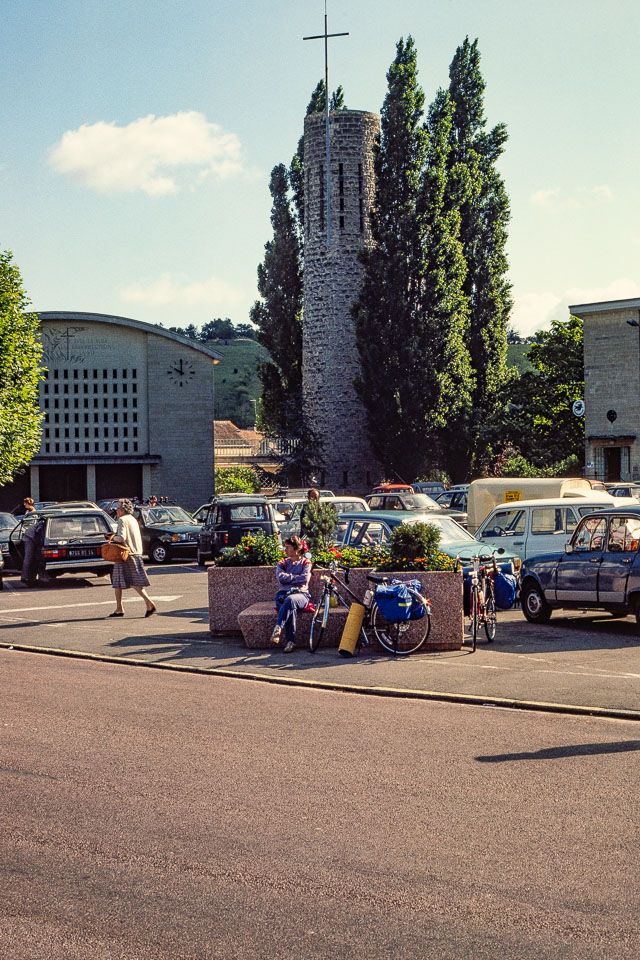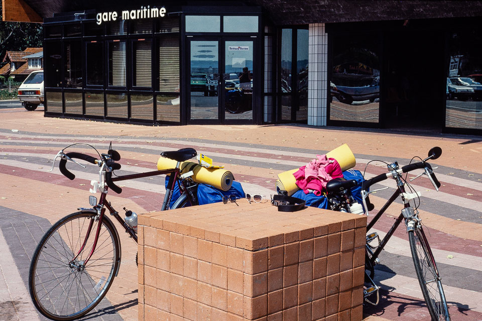 A pause between trains at Le Mans, for frites. On way back to Sées for tent pole section...
