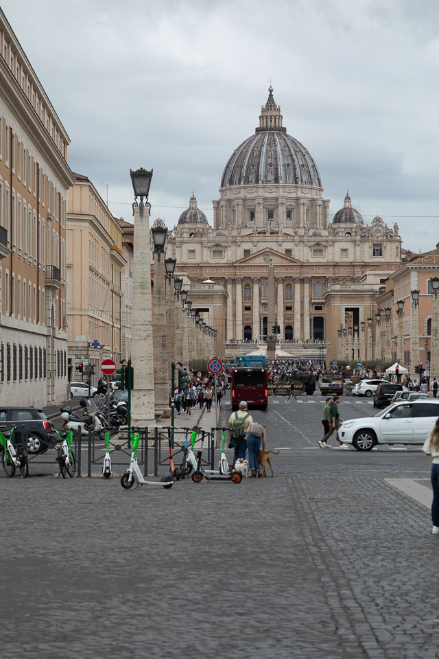 Part of our daily walk to the bus took us through St Peter's Square, and the queue for the Vatican.