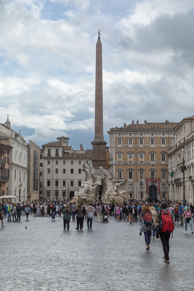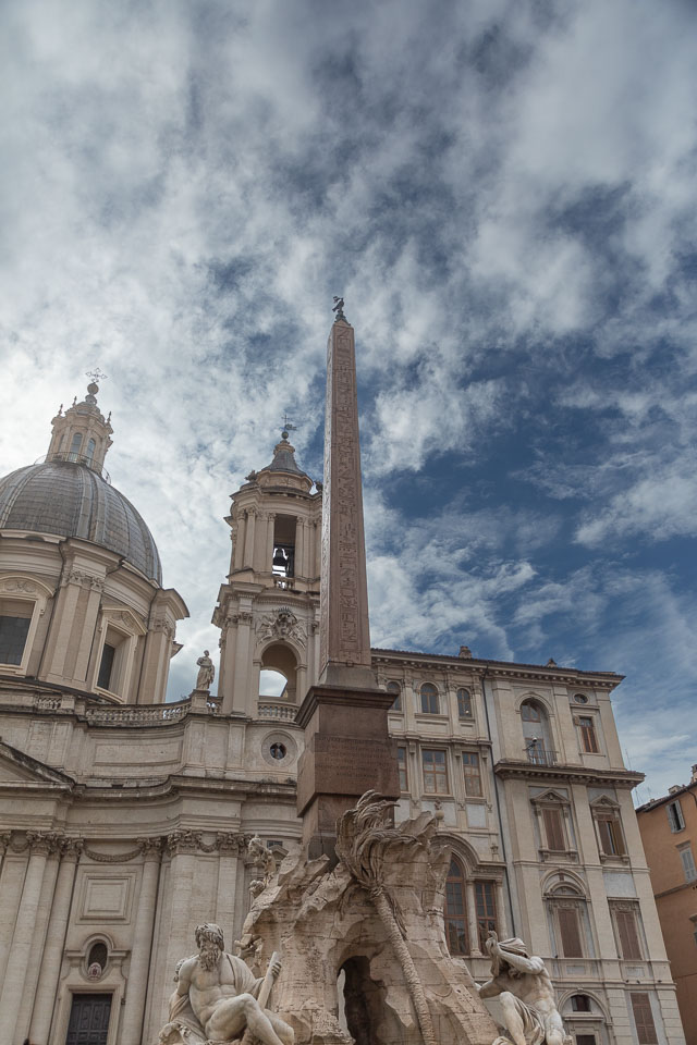 Bernini's Fiumi Fountain in Piazza Navona, with Egyptian obelisk.
