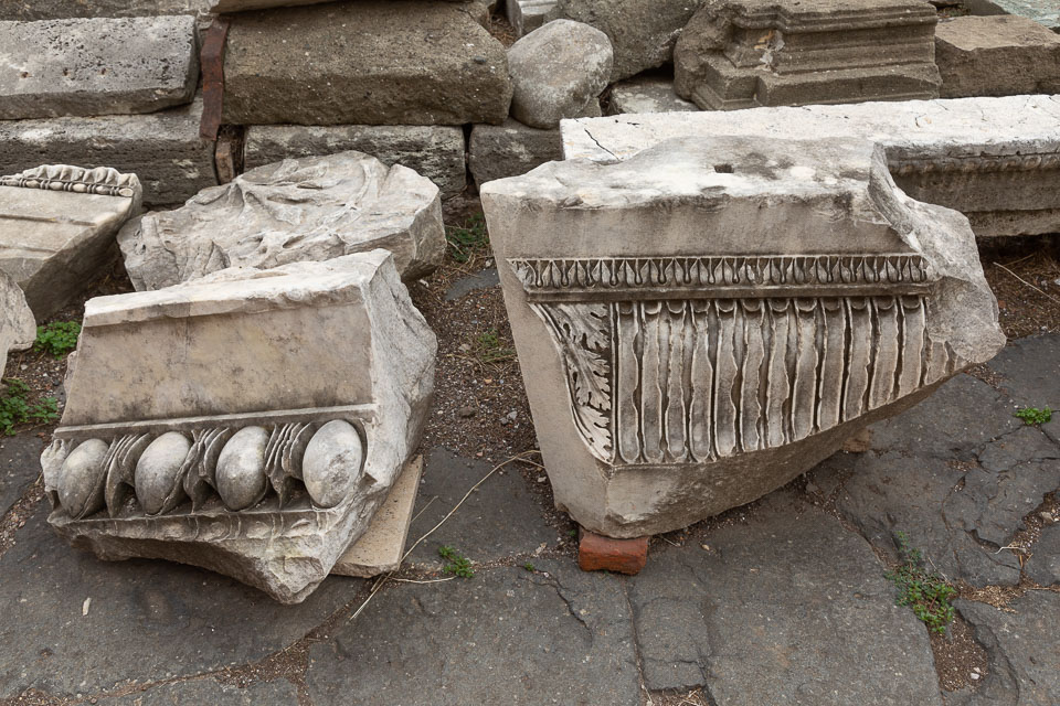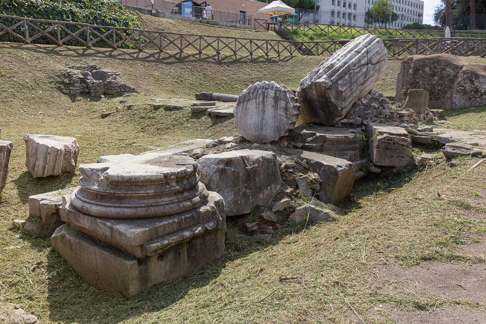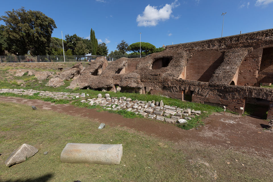 The Hemicycle of the Circus Maximus, with various marble pieces lying around.