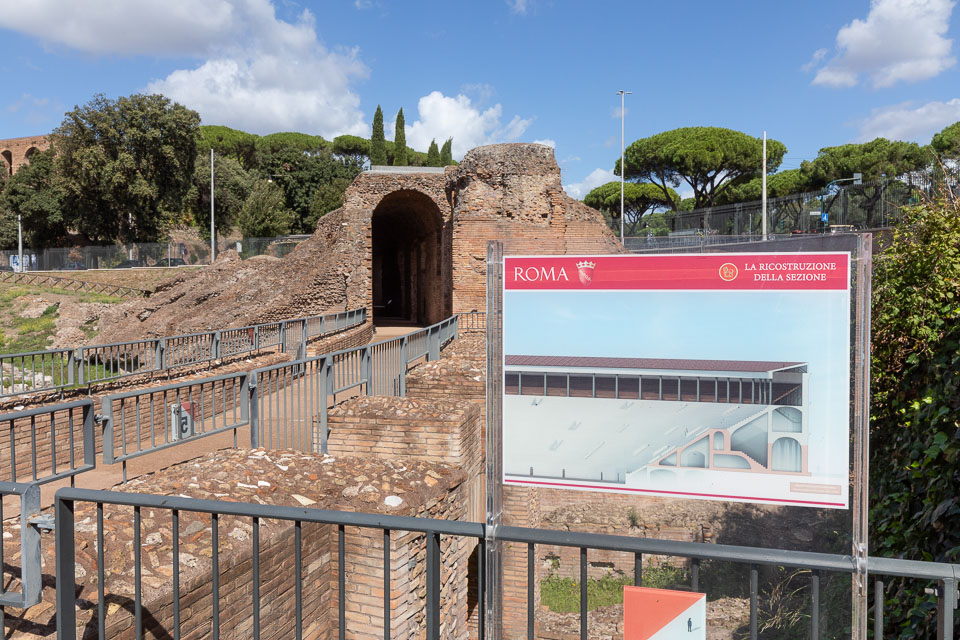 At the hemicycle of the Circus Maximus, with surviving substructure.