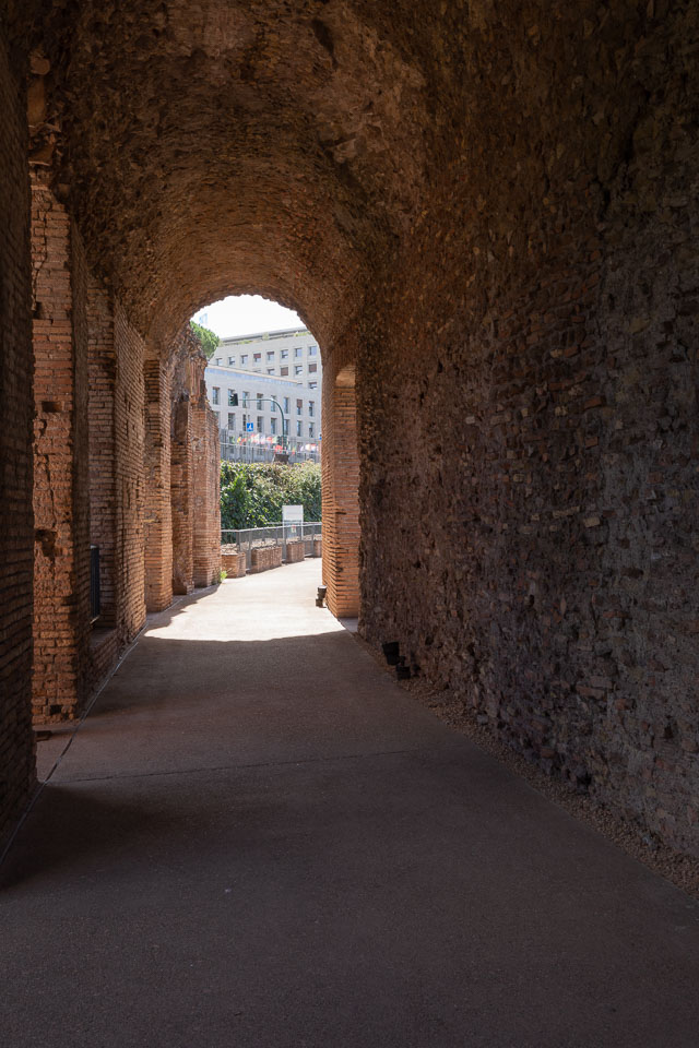 Fiona inside the Markets of Trajan. Lots of little rooms, probably administrative in function, rather than shops.