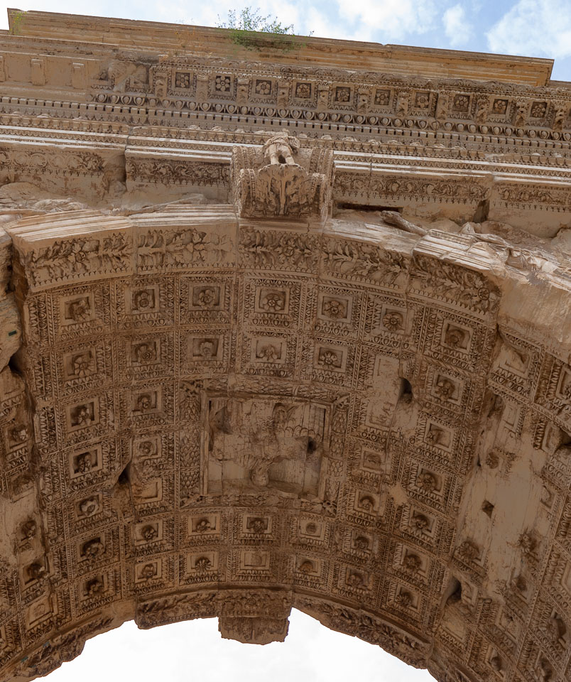 Under the Arch of Titus at the entrance to the Roman Forum on the Via Sacra.