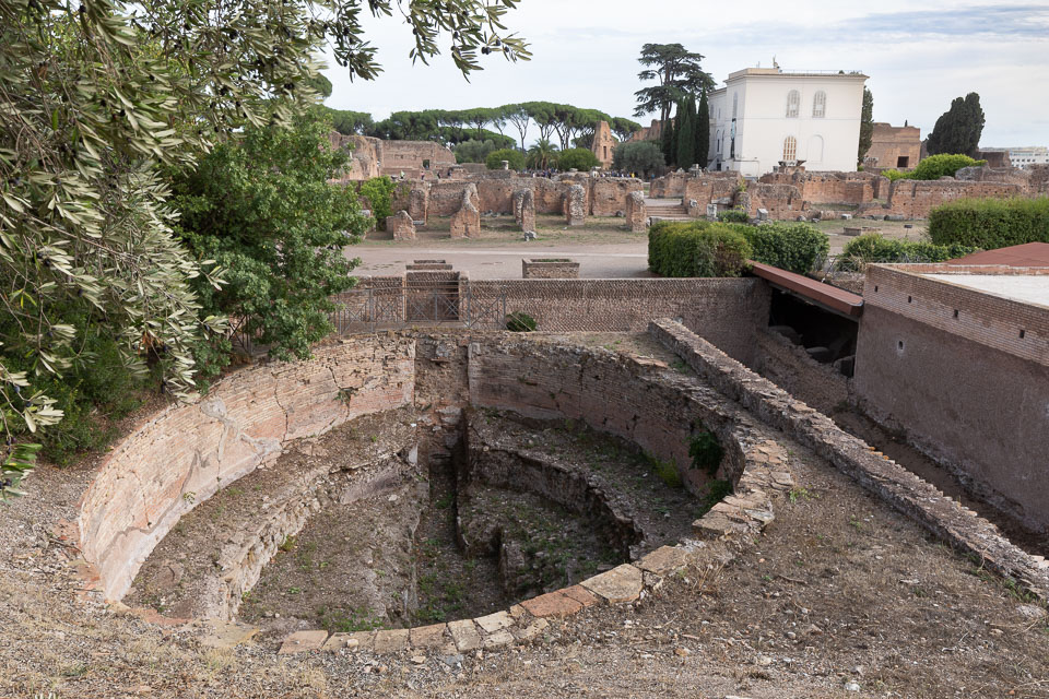 Domus Flavia on the Palatine Hill, barely a hint of the former white marble fountain of the Eliptical Nymphaeum.