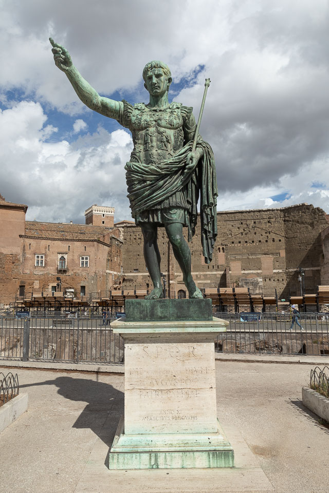 Statue of Augustus, with the Forum of Augustus behind.