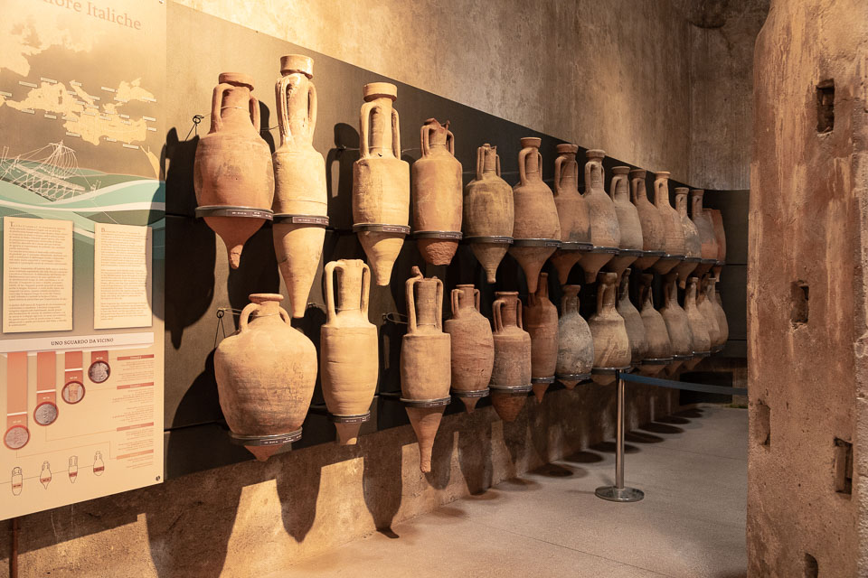 Fiona with some big jars (amphorae).