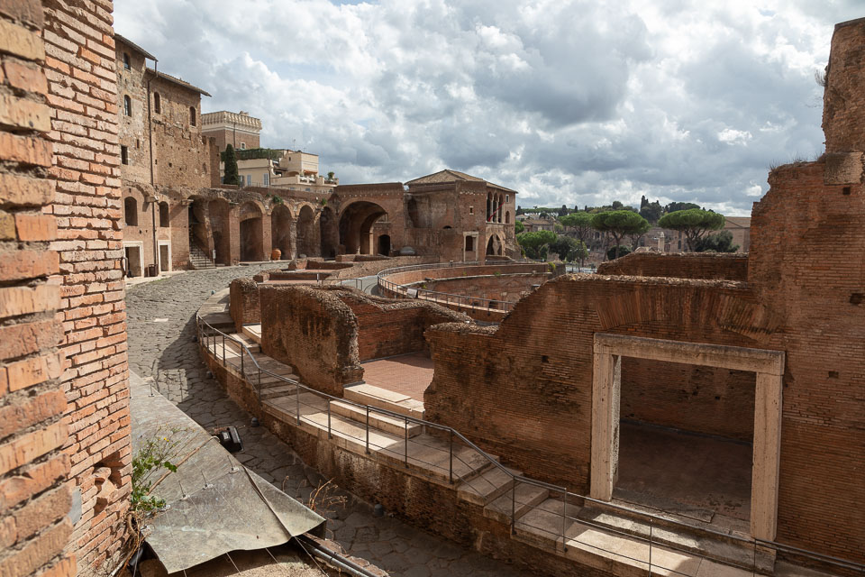 A view of the street on the upper level of Trajan's Markets.