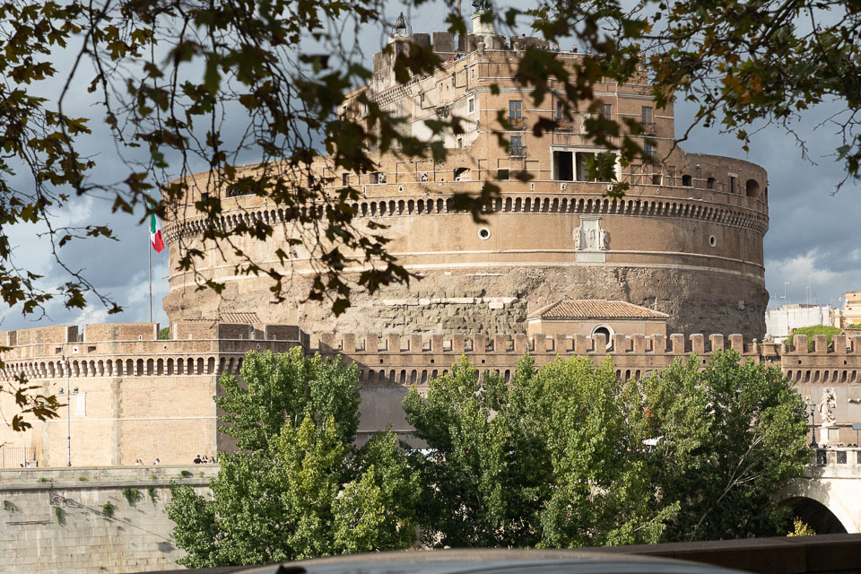 Looking across the Tiber to the Castel Sant'Angelo beyond the Ponte Sant'Angelo.