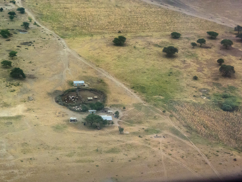 Small farm photographed from the air, on approach to Kilimanjaro International Airport, Tanzania