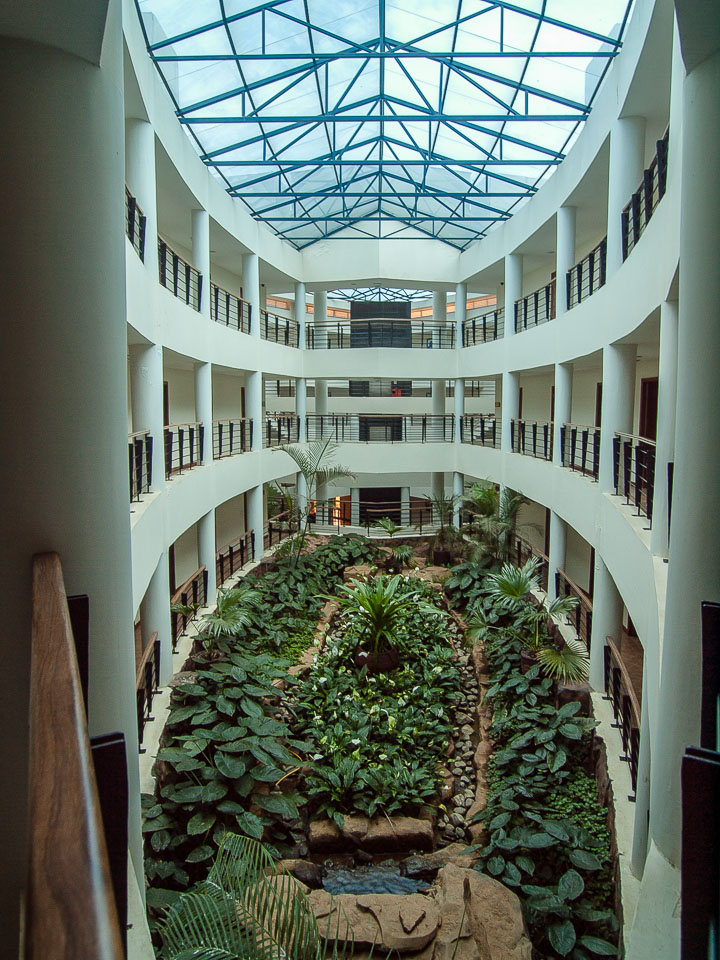 Our block in the Snow Crest Hotel, Arusha. The building mirrors the shape of the leaves on the plants below
