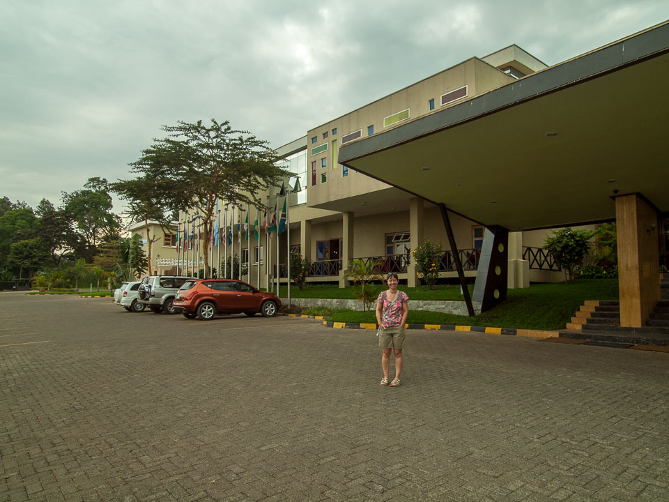 Fiona outside the Snow Crest Hotel, Arusha, Tanzania