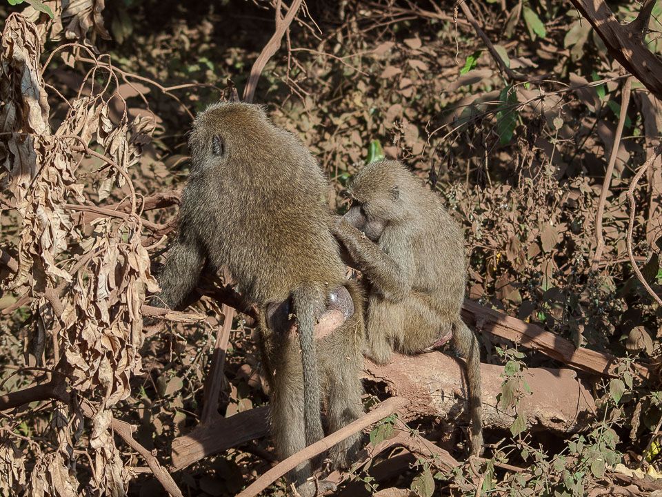 Olive Baboons grooming at Lake Manyara National Park