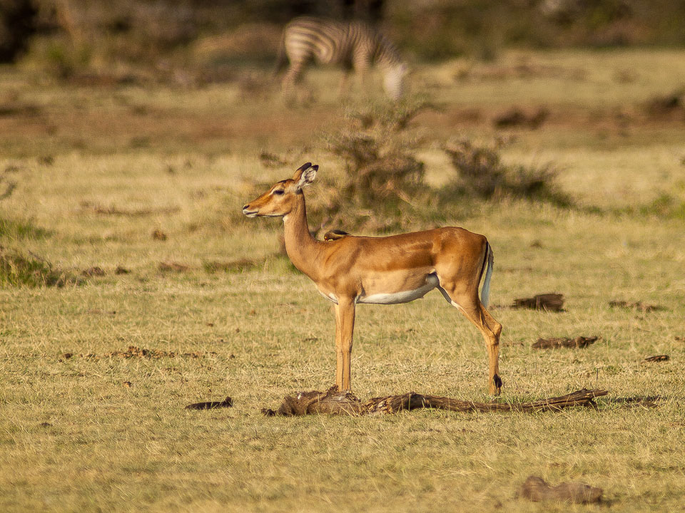 Impala, female, with Red-billed Oxpecker, at Lake Manyara National Park